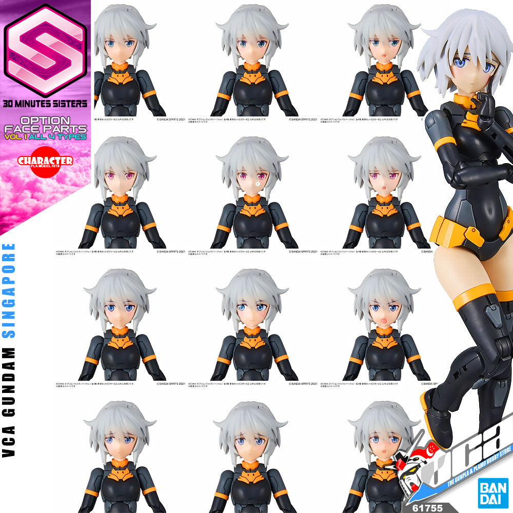 Change your 30MS (30 Minutes Sisters) figure model kit's face and personality with this face parts set! There are four different sets available, and each set contains three different facial expressions (for a total of 12 expressions).The features are tampo printed. Order yours today!