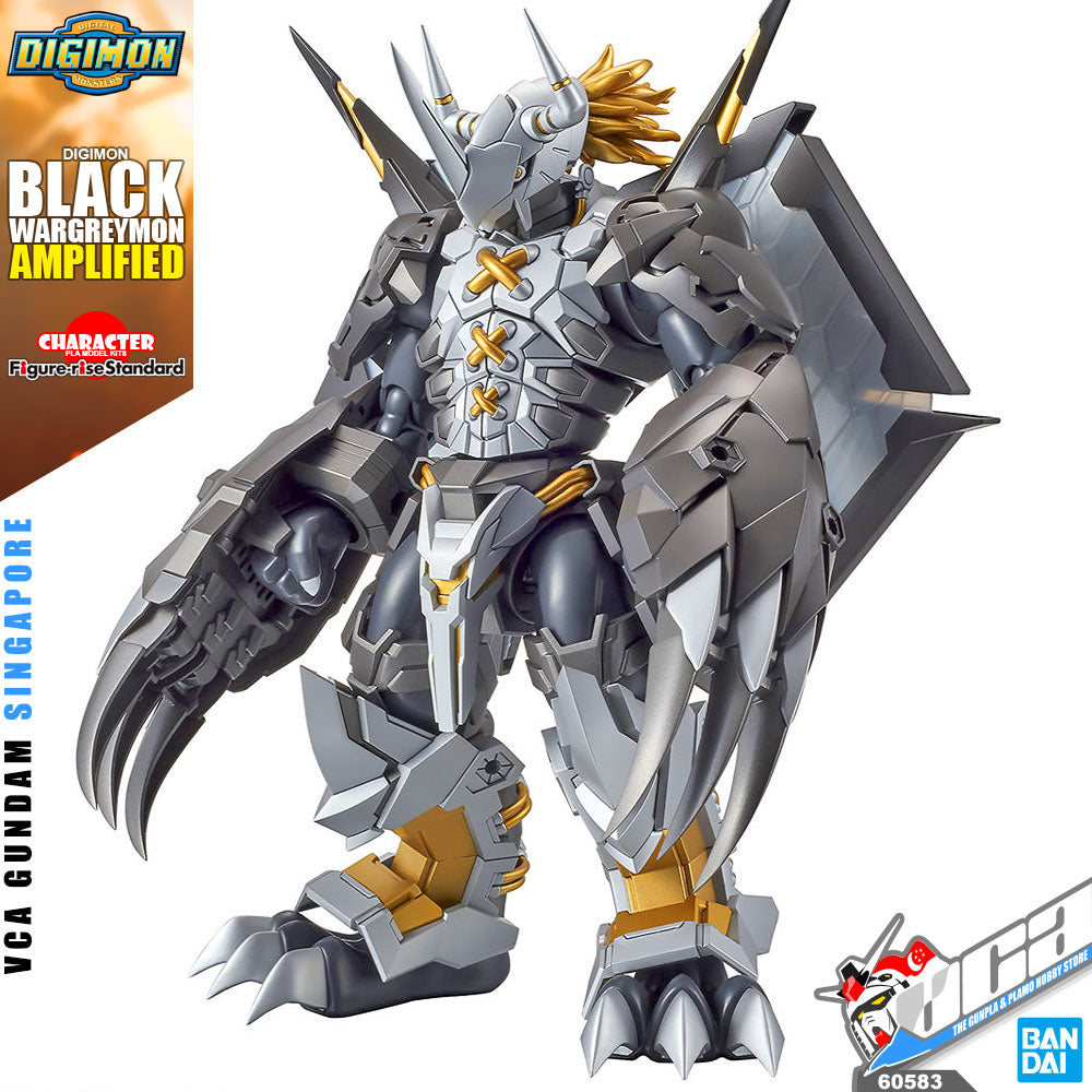 The mighty BlackWarGreymon from "Digimon Adventure 02" joins the Figure-rise Standard Amplified lineup from Bandai! It's molded in its signature black and silver colors, with massive wings that can connect to its back, or changed to a shield and mounted to its arms. Effect parts are also included, as are foil stickers for the markings. Order this spectacular mecha-beast today!