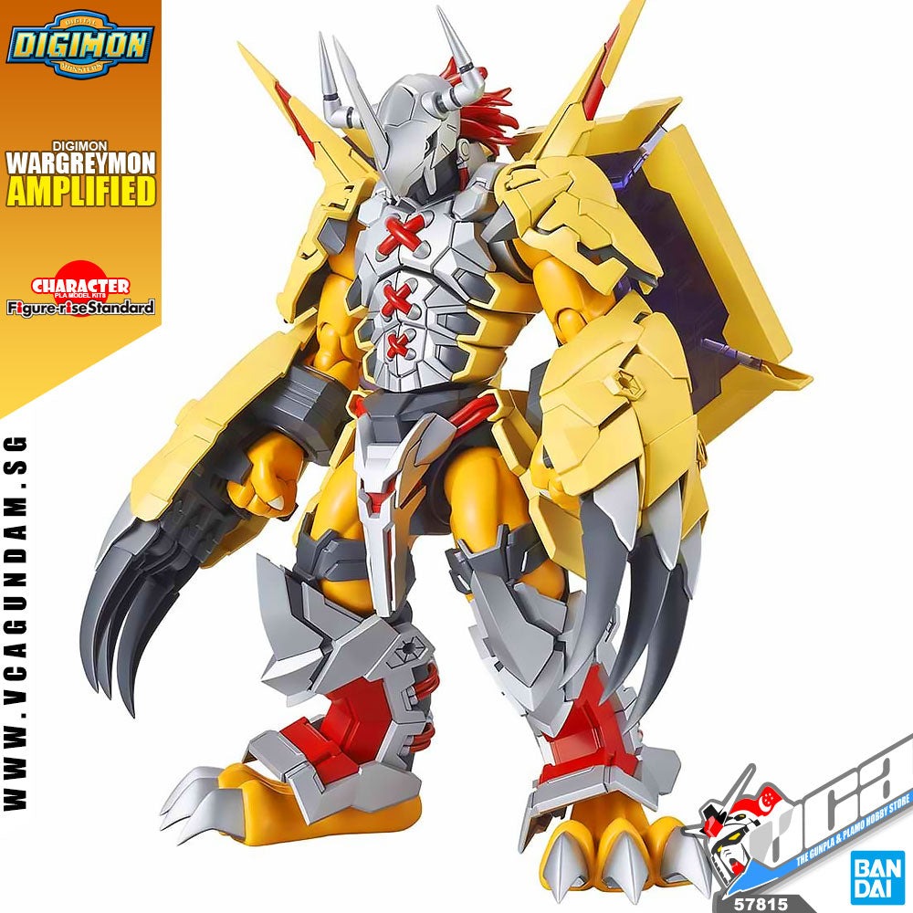 From Bandai comes a Figure-rise from "Digimon" of the standard version of Amplified WarGreymon! It's the first appearance of the amplified series, with features looking better than ever as a boost to the original design! Both arms are removable and can be attached together. The Brave Shield is able to take on a wing-like form and is detachable from the arm.