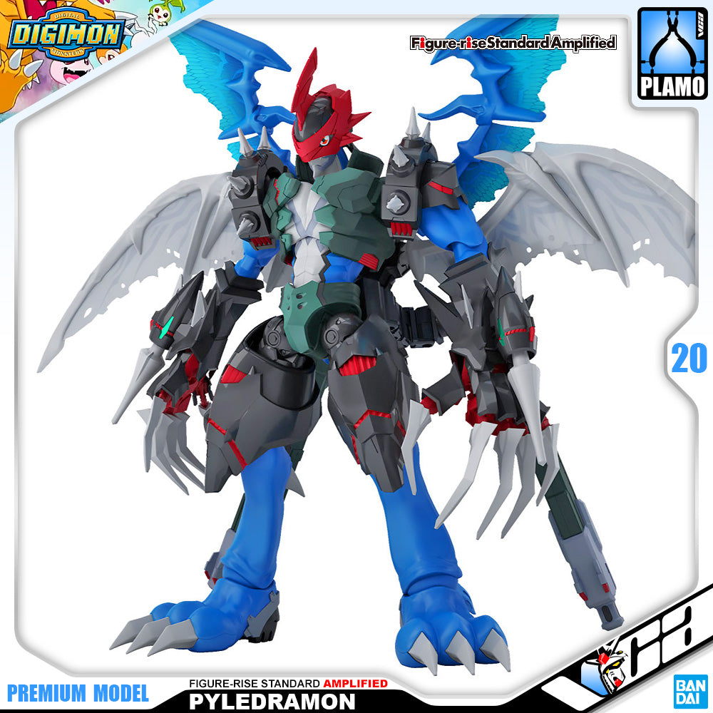 From "Digimon Adventure 02", "Pyledramon" appears in a new model with the proportions and arrangement of the whole body amplified under the supervision of "As' Maria"!■Gloss injection is used for black parts to pursue the contrast between biological and mechanical.■Desperado Blaster is equipped with a telescoping mechanism. It is also possible to combine them as an Amplified original gimmick.■The spikes on the arms of the Amplified original gimmick can express the injection state with lead wires.■The wings on the back are...