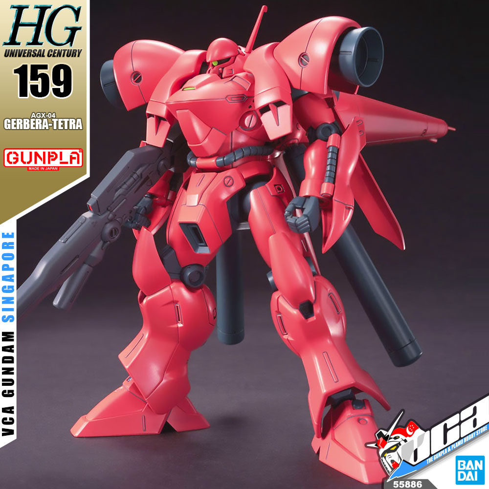 The Gerbera Tetra from Stardust Memory is finally here in a modern kit! It features all the standard HG fare, like full articulation and poseability as well as its array of weapons as seen in the show. This kit includes the classic beam machinegun as well as several pairs of interchangeable hands.