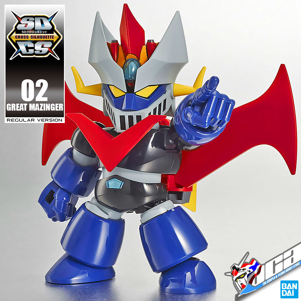 You can choose to assemble this kit of the mighty Great Mazinger in its Super Deformed or Cross Silhouette style! It's molded in color so painting is not necessary, and assembly is easy. Marking stickers and its weaponry are included, as are the Scramble Dash and extra interchangeable hands. Please be aware that this kit only includes one frame, which can be rearranged into either SD or CS mode.