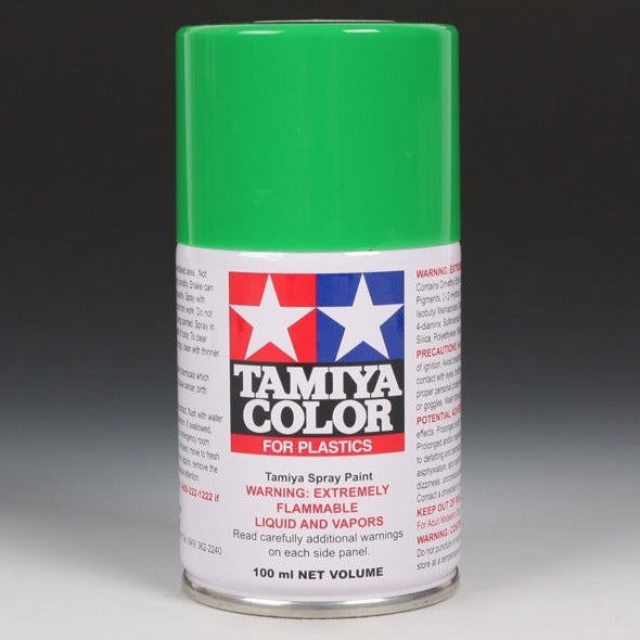 TS These cans of spray paint are extremely useful for painting large surfaces. The paint is a synthetic lacquer that cures in a short period of time. Each contains 100ml of paint, which is enough to fully cover 2 or 3, 1/24 scale sized car bodies. Tamiya spray paints are not affected by acrylic or enamel paints. Therefore, following an overall base coat, details can be added or picked out using enamel and/or acrylic paints. By combining the use of...