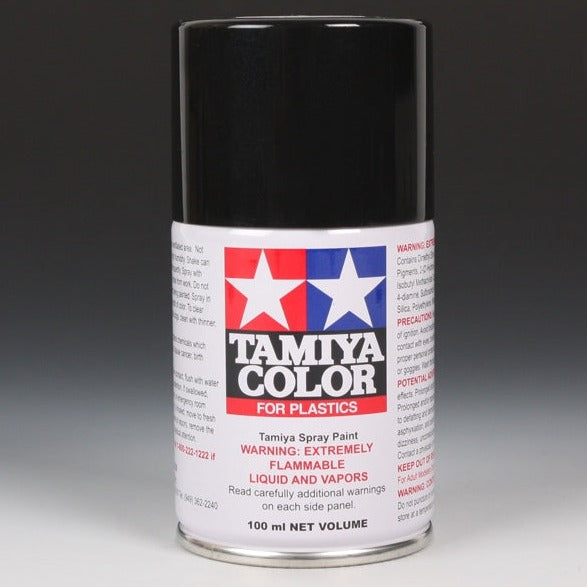 TS These cans of spray paint are extremely useful for painting large surfaces. The paint is a synthetic lacquer that cures in a short period of time. Each contains 100ml of paint, which is enough to fully cover 2 or 3, 1/24 scale sized car bodies. Tamiya spray paints are not affected by acrylic or enamel paints. Therefore, following an overall base coat, details can be added or picked out using enamel and/or acrylic paints. By combining the use of...