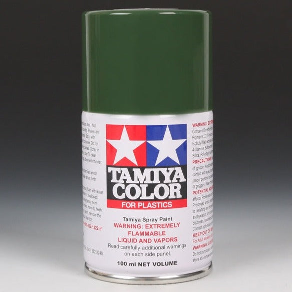 TS These cans of spray paint are extremely useful for painting large surfaces. The paint is a synthetic lacquer that cures in a short period of time. Each contains 100ml of paint, which is enough to fully cover 2 or 3, 1/24 scale sized car bodies. Tamiya spray paints are not affected by acrylic or enamel paints. Therefore, following an overall base coat, details can be added or picked out using enamel and/or acrylic paints. By combining the use of...