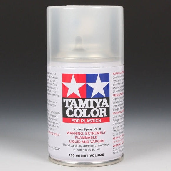 TS These cans of spray paint are extremely useful for painting large surfaces. The paint is a synthetic lacquer that cures in a short period of time. Each contains 100ml of paint, which is enough to fully cover 2 or 3, 1/24 scale sized car bodies. Tamiya spray paints are not affected by acrylic or enamel paints. Therefore, following an overall base coat, details can be added or picked out using enamel and/or acrylic paints. By combining the use of...
