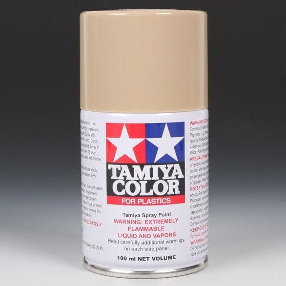 TS These cans of spray paint are extremely useful for painting large surfaces. The paint is a synthetic lacquer that cures in a short period of time. Each contains 100ml of paint, which is enough to fully cover 2 or 3, 1/24 scale sized car bodies. Tamiya spray paints are not affected by acrylic or enamel paints. Therefore, following an overall base coat, details can be added or picked out using enamel and/or acrylic paints. By combining the use of...