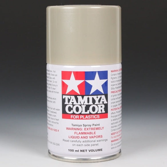 TS These cans of spray paint are extremely useful for painting large surfaces. The paint is a synthetic lacquer that cures in a short period of time. Each contains 100ml of paint, which is enough to fully cover 2 or 3, 1/24 scale sized car bodies. Tamiya spray paints are not affected by acrylic or enamel paints. Therefore, following an overall base coat, details can be added or picked out using enamel and/or acrylic paints. By combining the use of...
