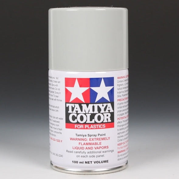 TS These cans of spray paint are extremely useful for painting large surfaces. The paint is a synthetic lacquer that cures in a short period of time. Each contains 100ml of paint, which is enough to fully cover 2 or 3, 1/24 scale sized car bodies. Tamiya spray paints are not affected by acrylic or enamel paints. Therefore, following an overall base coat, details can be added or picked out using enamel and/or acrylic paints. By combining the use of...