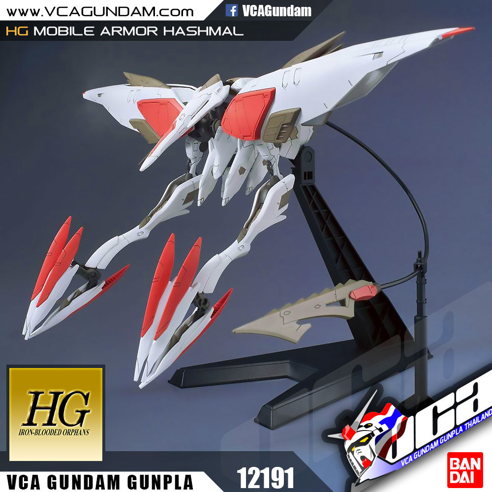 From the second season of the hit anime series “Iron Blooded Orphans” comes the menacing and huge Mobile Armor Hashmal! Its arm parts can be display open or closed, and its mouth can be opened to display it with the included beam effect part! Includes a large base made exclusively for the Hashmal, and a sword for HG Gundam Barbatos Lupus!